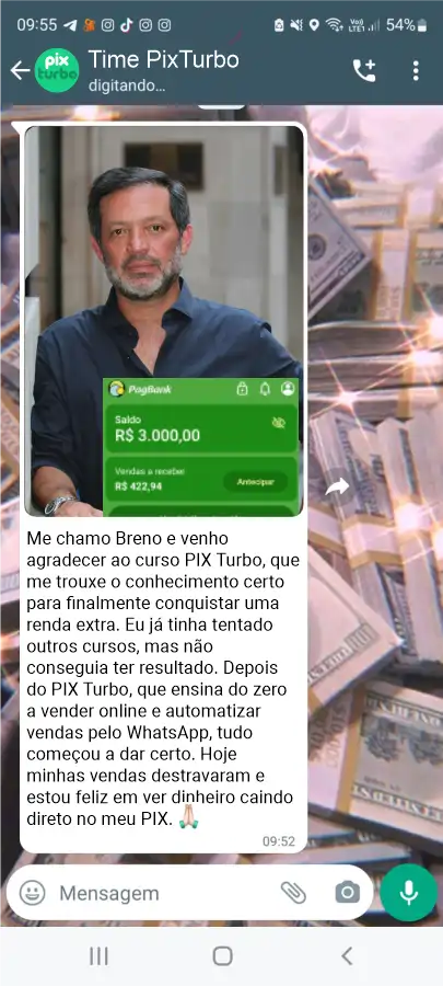 Aqui você não vai ficar perdido: você recebe um passo a passo claro, pronto para aplicar, e ainda conta com a ajuda de um robô que trabalha por você no WhatsApp, gerando vendas automáticas e PIX todos os dias.