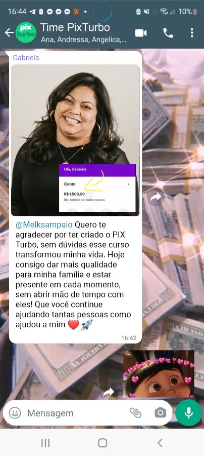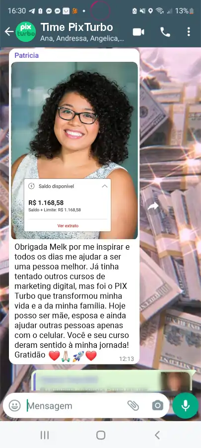 Você entra num grupo fechado, onde pode tirar dúvidas, trocar estratégias e receber dicas direto da equipe PixTurbo.