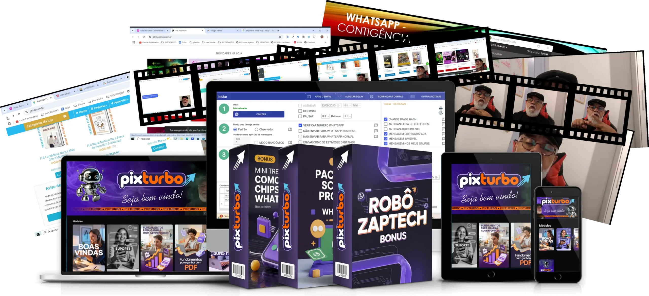 Sim. O PIXTURBO é compatível com Windows e pode ser usado em conjunto com WhatsApp Web. O treinamento ensina a instalar e configurar mesmo que você nunca tenha usado um robô antes.